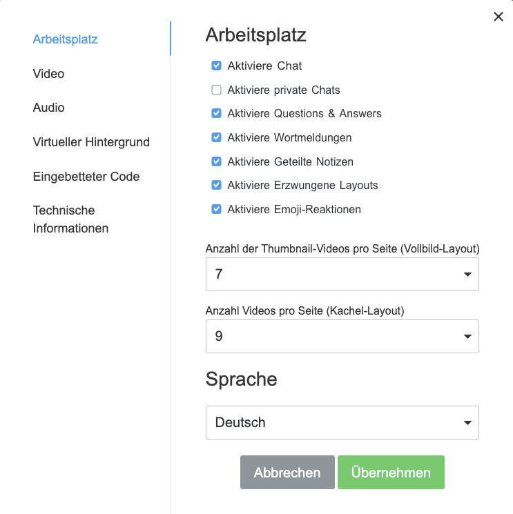 - Ein- bzw. Abschalten von Q&A (Fragen und Antworten