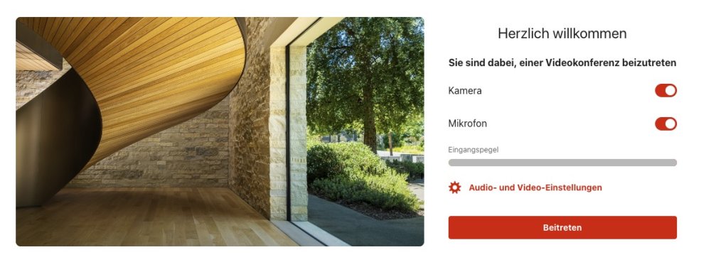 Nach dem Klick auf „An Session teilnehmen“ und Audio- und Video-Einstellungen können Sie Ihr Mikrofon & die Webcam testen: