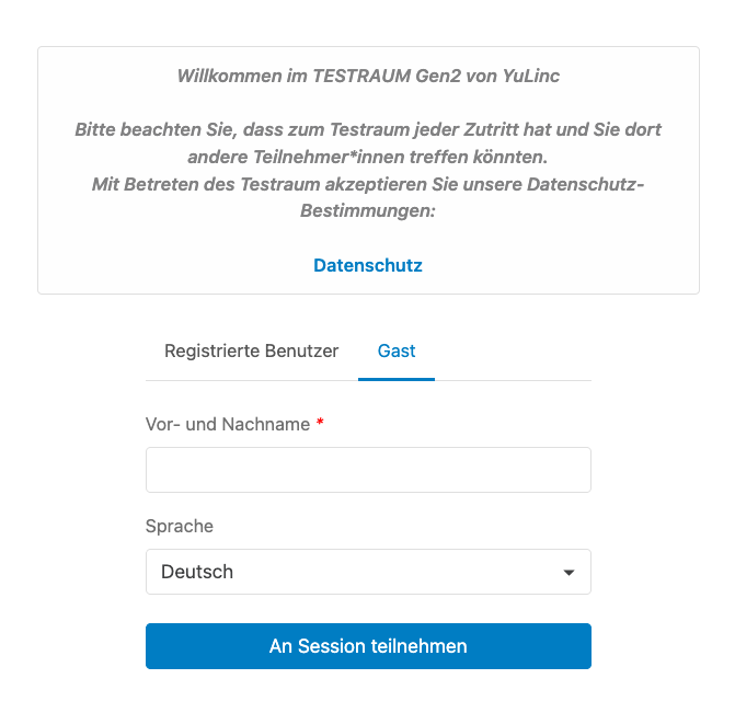 Gerne können Sie unseren YuLinc-Testraum nutzen. Hier probieren Sie Ihre Audio- und Video-Funktionen aus und treffen sich mit Kollegen zum Soundcheck: