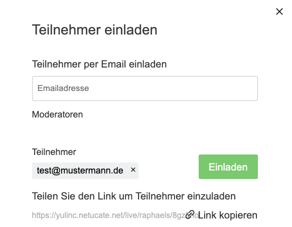 Sie können auch noch Teilnehmer einladen, wenn Sie bereits die virtuelle Session gestartet haben: