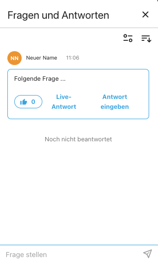 Mit Hilfe von Q&A können Teilnehmer Fragen an die Moderatoren stellen.
