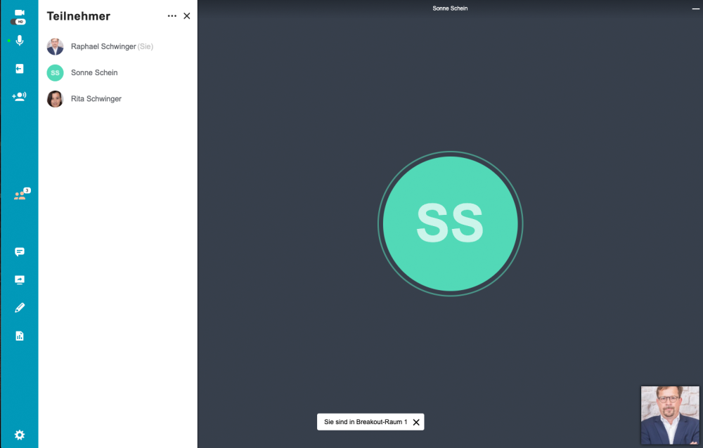 Im Breakout Raum haben alle Teilnehmer erweiterte Berechtigungen. D.H. sie können direkt das Audio und die Webcam nutzen bzw. in den Materialen arbeiten.