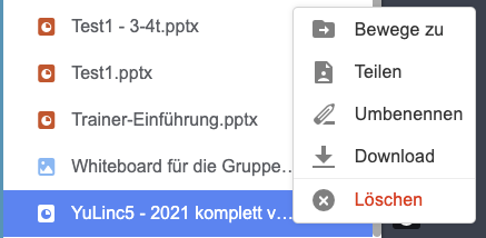 In diesem Ordner sind alle geteilten Dateien aufgelistet, die jetzt von allen Moderatoren in der Session geöffnet bzw. downgeloadet werden können. Der Moderator, vom dem die Dateien stammen, muss nicht anwesend sein.