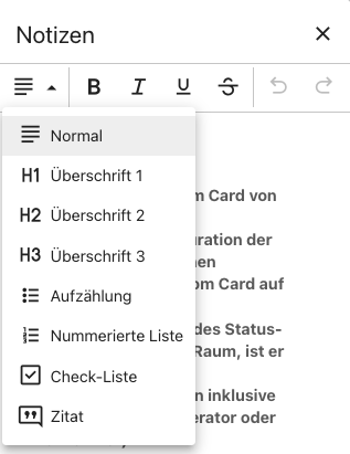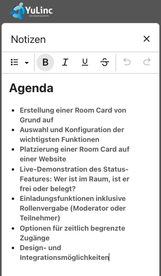 In den Notizen können Texte durch die Moderation erstellt werden, z.B. eine Agenda, aufgelaufene Fragen etc.