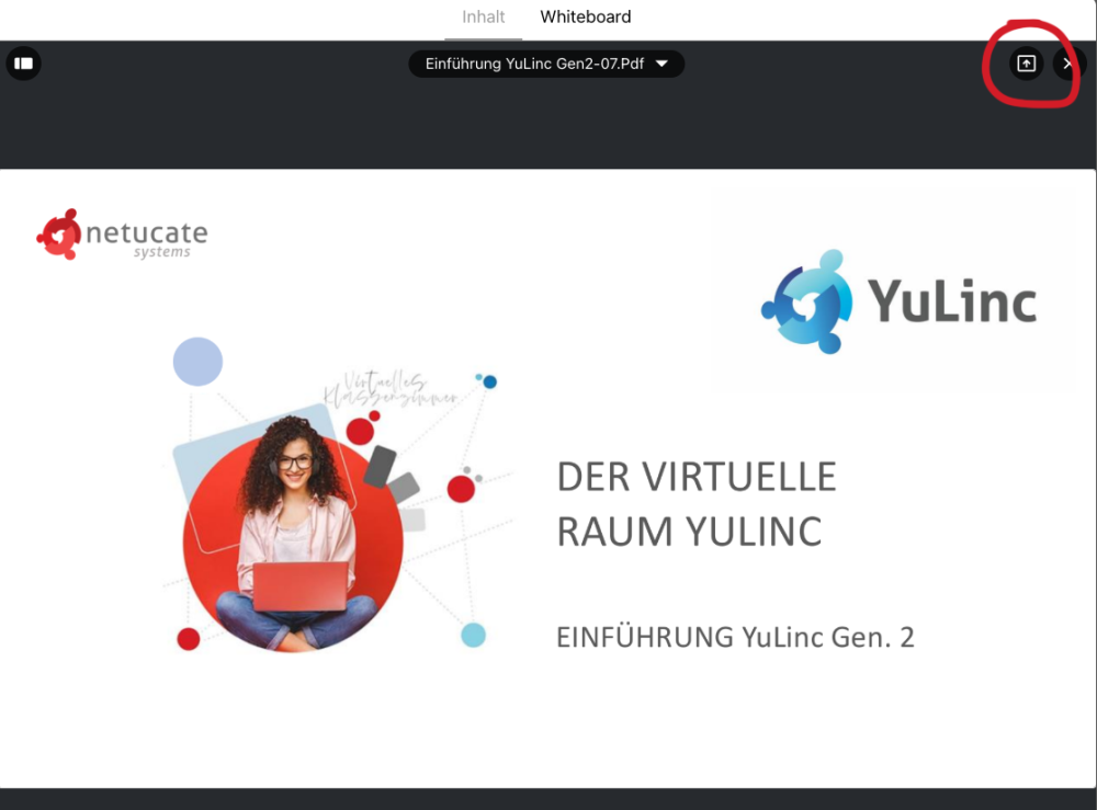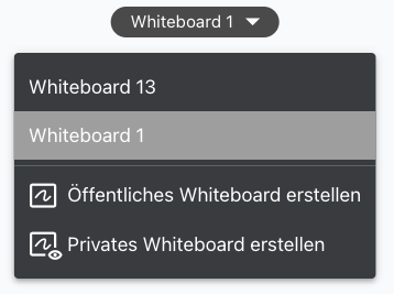 Sollten mehre Inhalte geöffnet sein – kann man diese über den Pfeil neben dem Namen des geöffneten Medium auswählen. Bei den mehreren geöffneten Whiteboards gilt das gleiche.