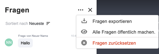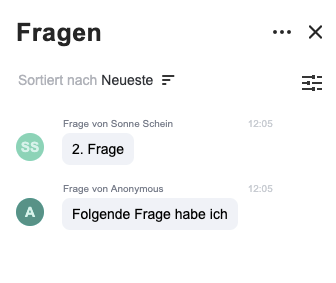 Standardmäßig sind die Fragen der Teilnehmer für die anderen Teilnehmer nicht sichtbar. Das kann jedoch geändert werden: