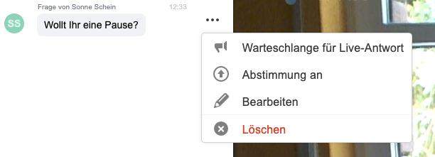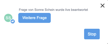 2) durch die Aktivierung “wird live beantwortet” sichtbar einblenden und direkt per Audio beantworten: