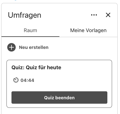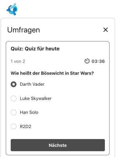 Im Umfragefenster erscheint der Quiz/Test und kann gestartet werden