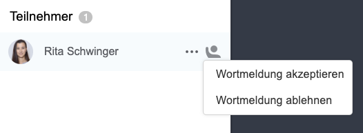 In der Teilnehmerliste kann die Moderation jetzt die Wortmeldung sehen: